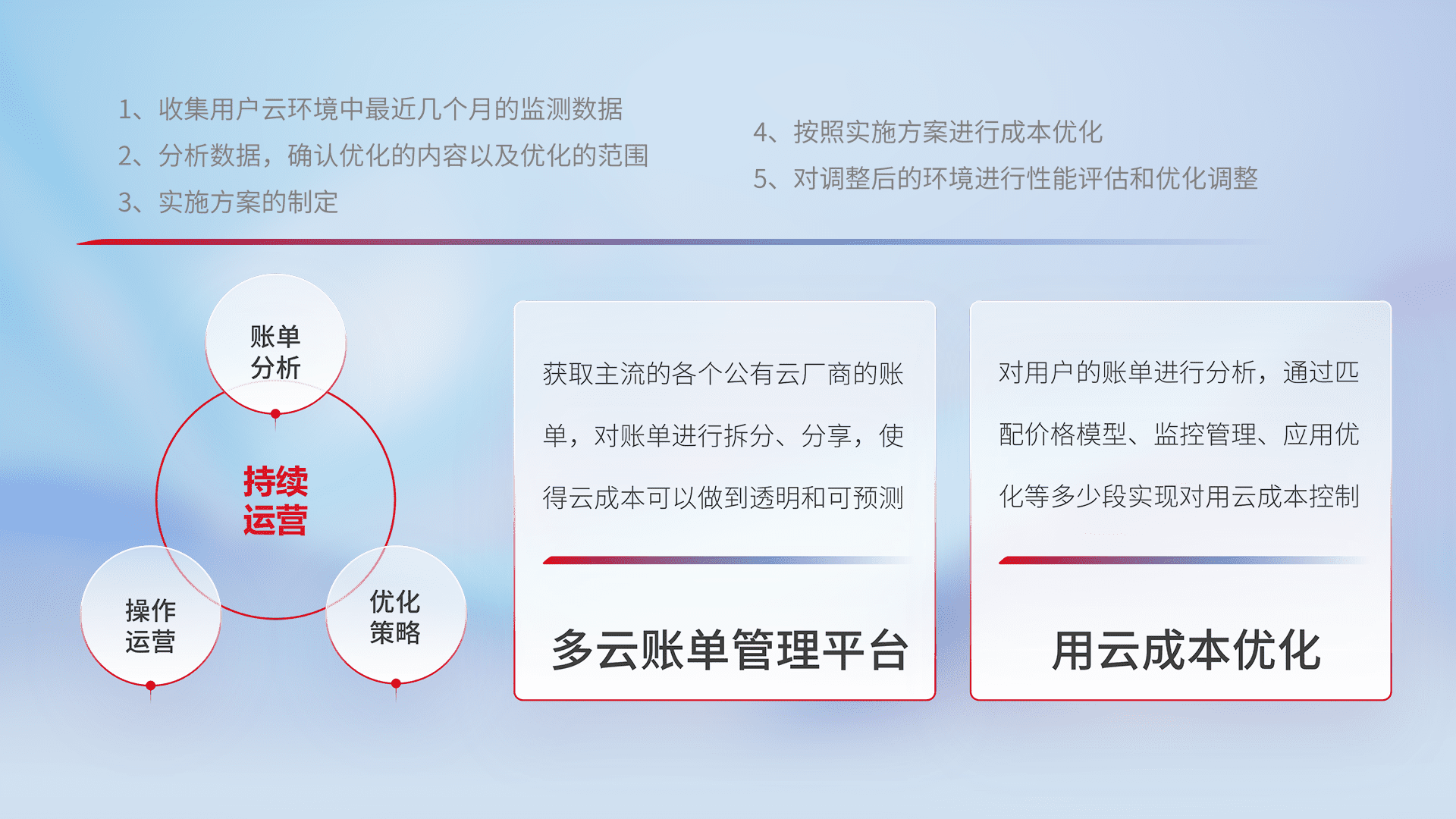 运用智能化工具分析云资源,,,,提供日常费用可视化工具,,,,自动账单拆分,,,,成本优化云上费用,,降本增效。。